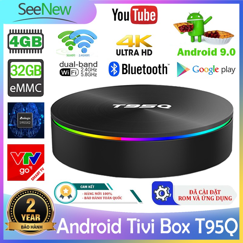 Miễn phí đổi trả nếu bán hàng kém chất lượng. Hiện tại Android Tivi Box Siêu mạnh 4K T95Q 4G+32G S905X2 Android 9.0 Gigabit Optical Wifi Bluetooth với Ứng dụng video miễn phí đang được giảm giá chỉ còn 1,301,070đ. Số lượng có hạn hãy nhanh tay đặt khi còn hàng bạn nhé