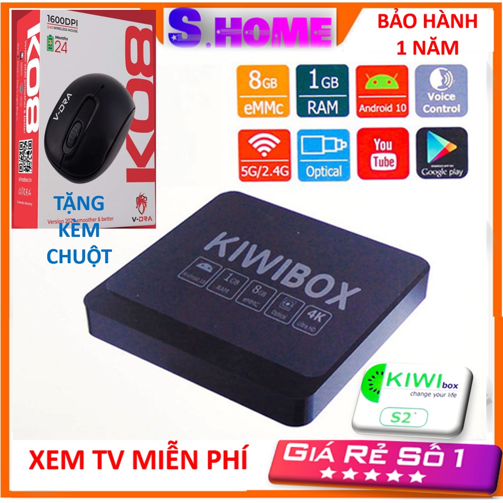 Đầu Android Tivi Box Kiwi S2+ TÍCH HỢP CỔNG QUANG, ANDROID 10 Tặng chuột không dây - CHÍNH HÃNG free ship